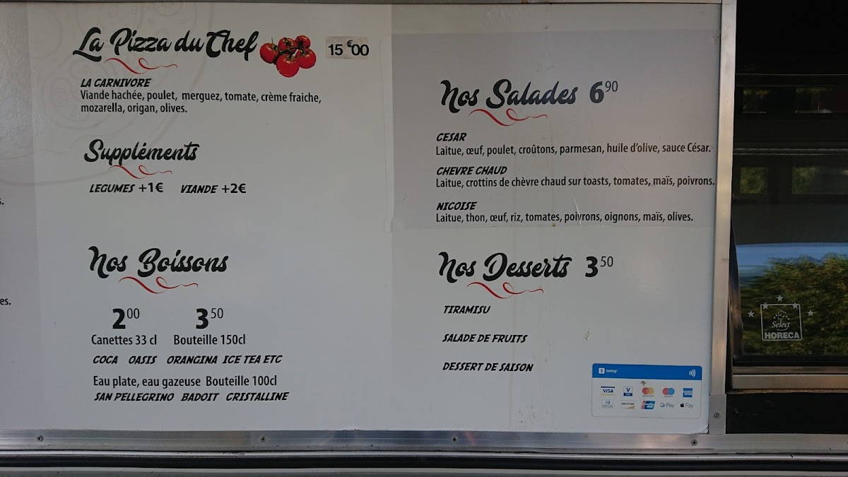 Excellent fresh made pizza and warm/kind service by the chef and staff. We were staying at the hotel in front, and we had like 3 meals here during our visit to Geneve. We didnt speak french, but the chef was really kind and we made it work. The food quality is great, the pizzas are delicious, specially the picquant, the sandwich and hit dogs were super, the crunchy onion on top was the cherry on top. We send a kind regard to the people of Piz Delice!